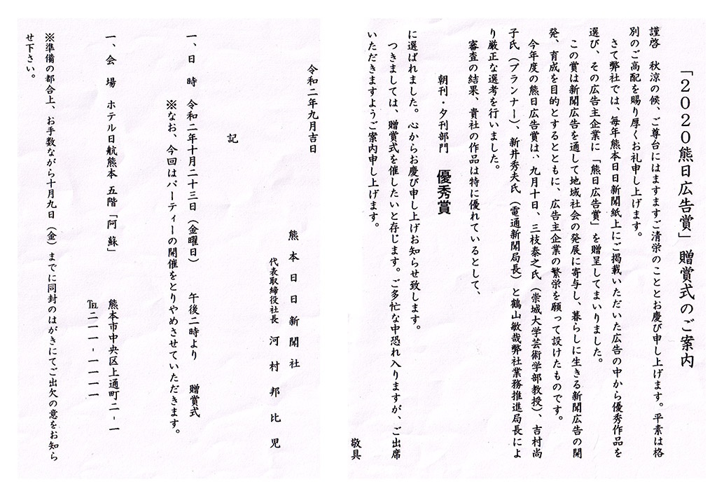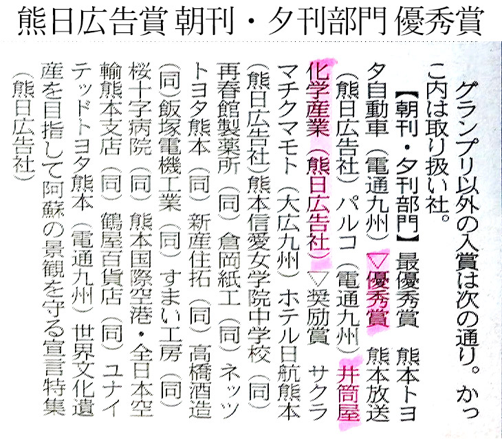 熊日広告賞 朝刊・夕刊部門 優秀賞